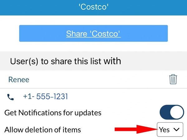 The person who shared the list has the ability to determine if users of that list can delete items. For each user, the choices are "Yes", "No", & "Only Completed Items". The default is "Only Completed Items".
